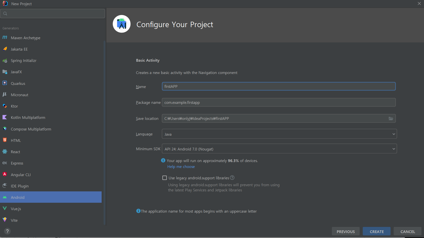intellij에서 Android Studio SDK를 설치해서 프로젝트를 생성하겠습니다.