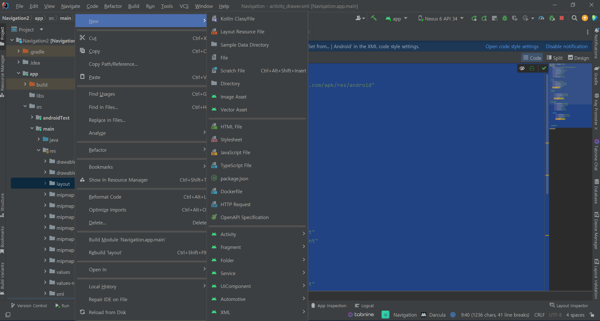 이름은 activity_drawer로 했습니다.