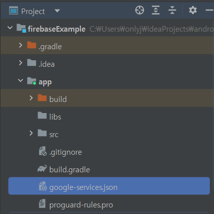 그후 google-services.json 을 다운받아서 app 하위에 넣습니다.