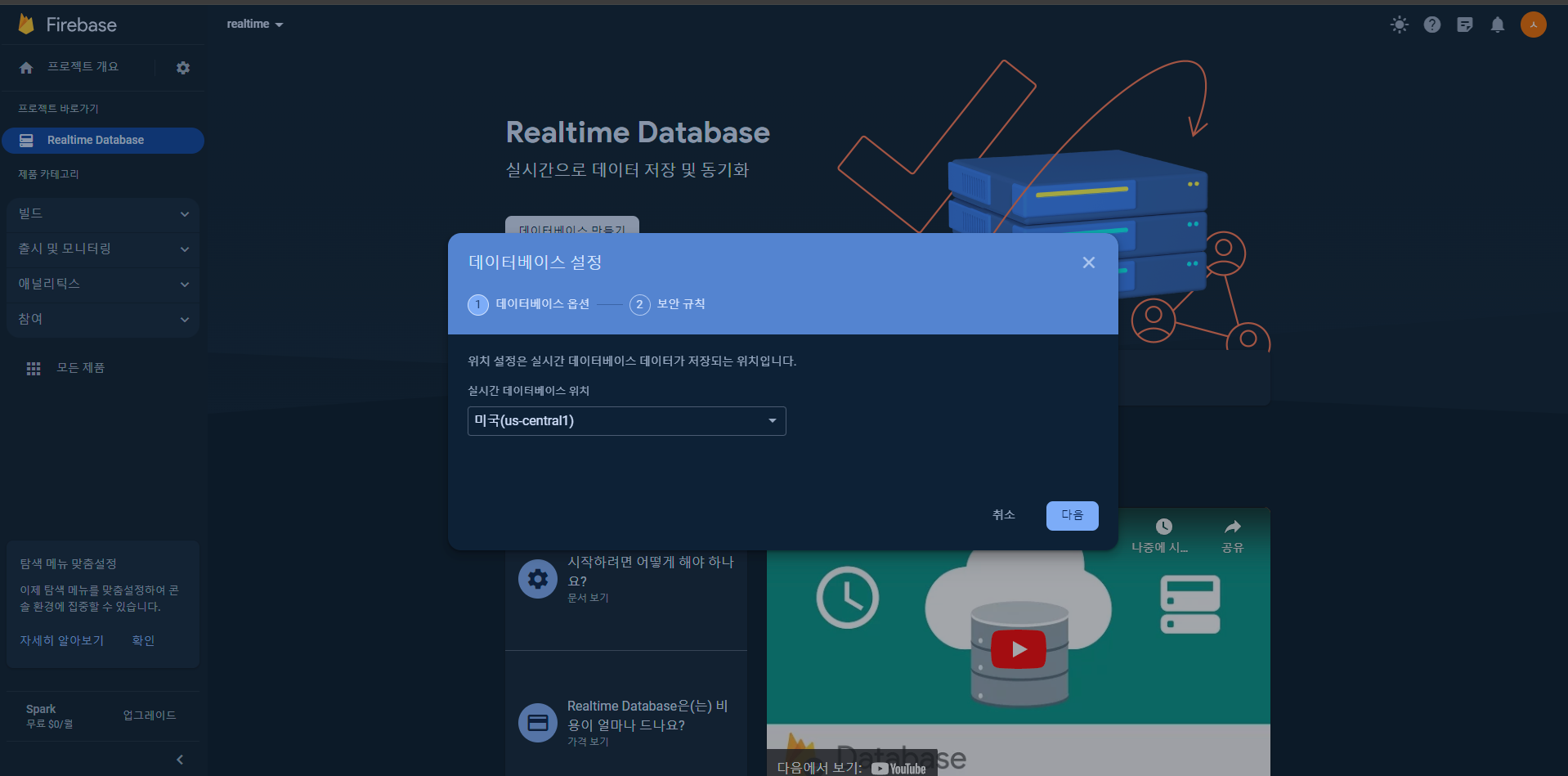 앱 등록도 완료하고 이제 database를 만듭니다.