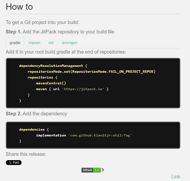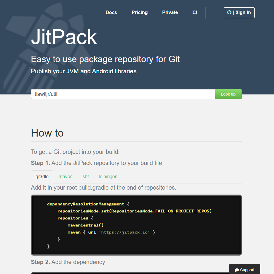 여기까지 완료되면 https://jitpack.io 사이트를 갑니다.